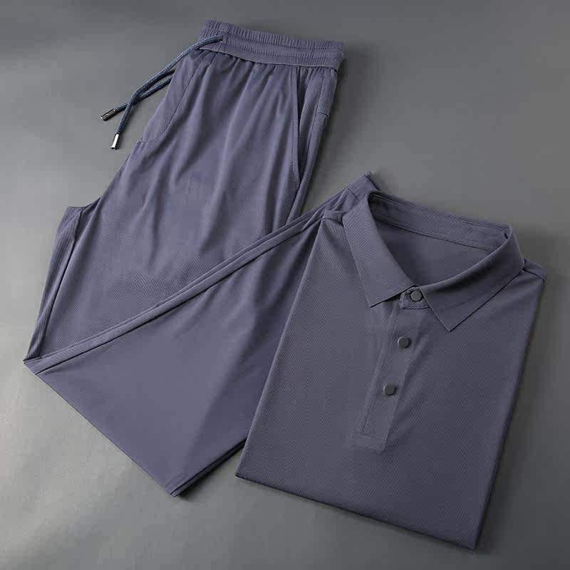 JSBD High-end Light Lavish Pressure Rubber Flap Collar Suit Men's Summer Silk Slip Ultra-thin Men Ice Silk Casual Sports Suit