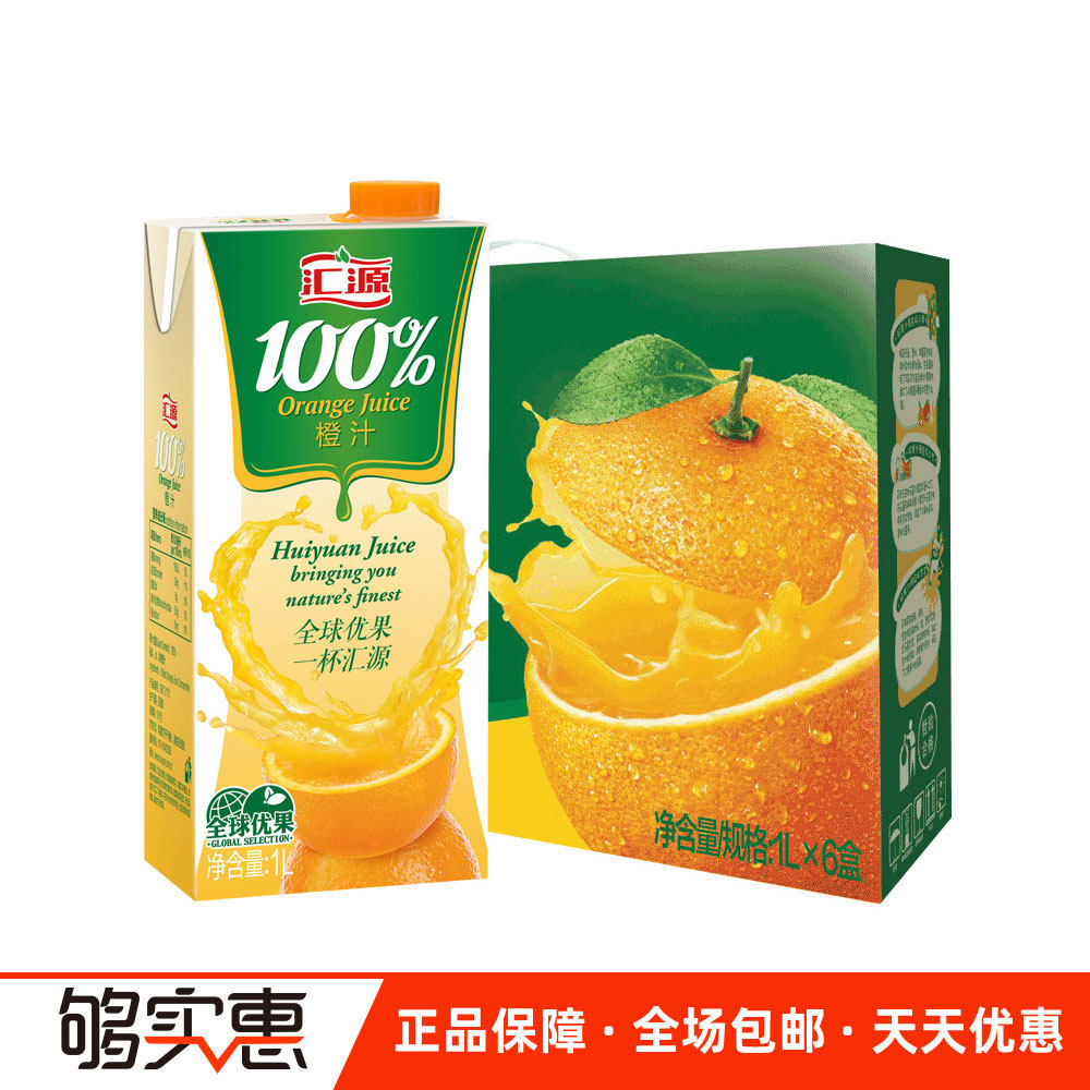 Huiyuan 100% orange juice drink 1000ml * 6 boxes of concentrated juice drinks whole box gift box Huiyuan juice
