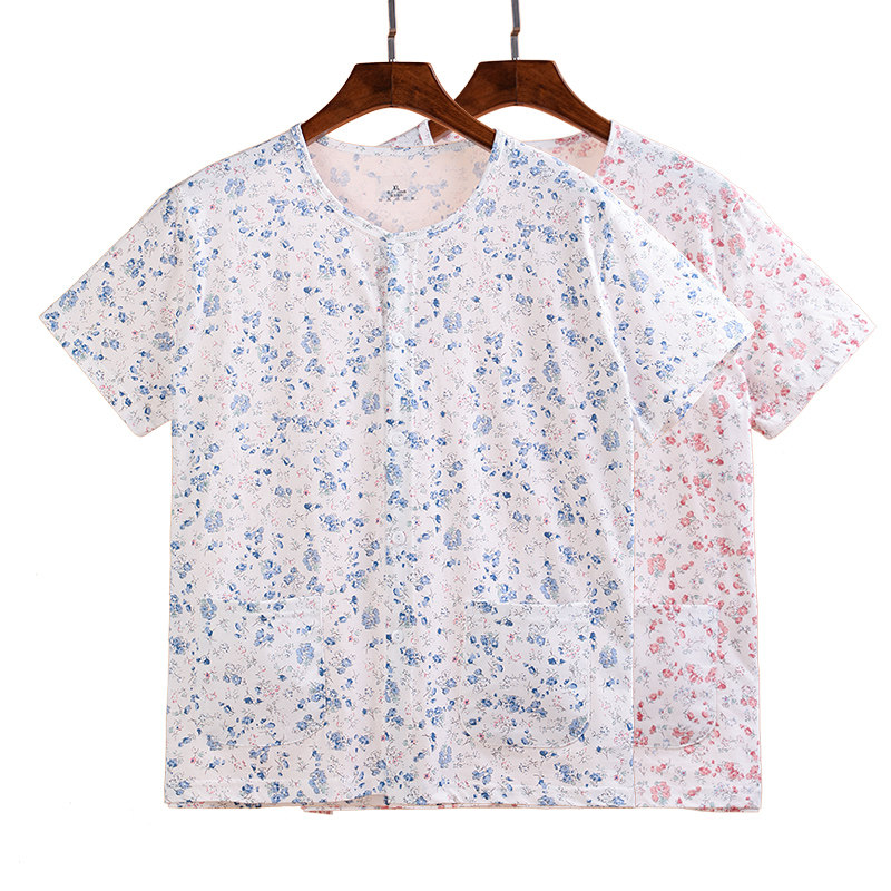 Middle-aged and elderly short-sleeved women's cotton loose cardigan mother grandma open body large size summer thin vest half sleeve