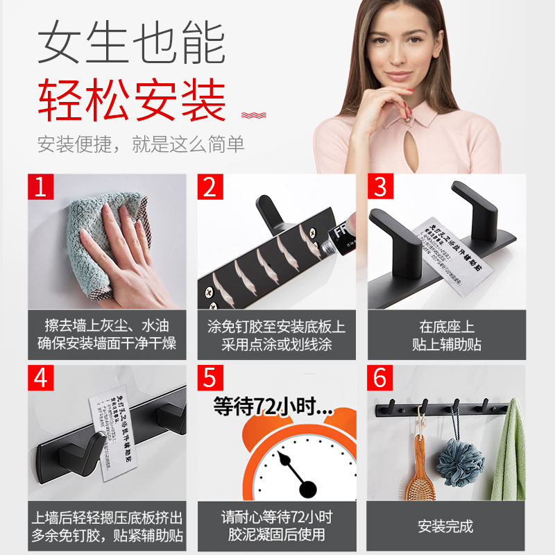 Hook powerful adhesive door rear wall hanging clothes hook bearing bathroom Kitchen hook free from punching into the door clothes