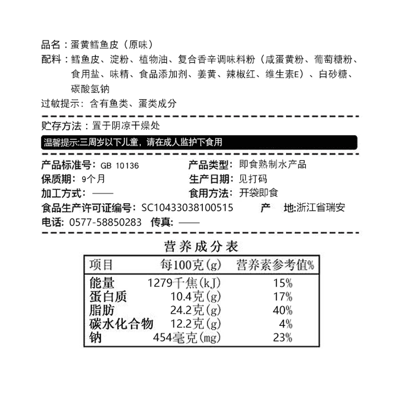Xianghai net Red egg yolk fish skin original crispy cod skin snacks Seafood ready-to-eat snacks Casual snacks 500g