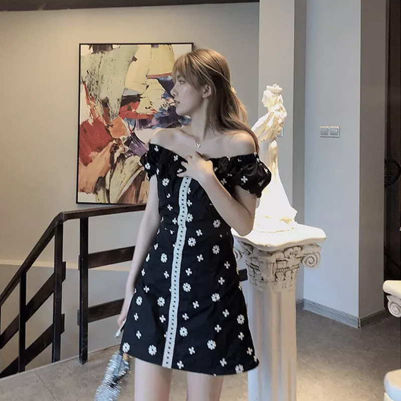 2020 summer new women's clothing large size black one-shoulder skirt temperament goddess style clothes light familiar wind dress