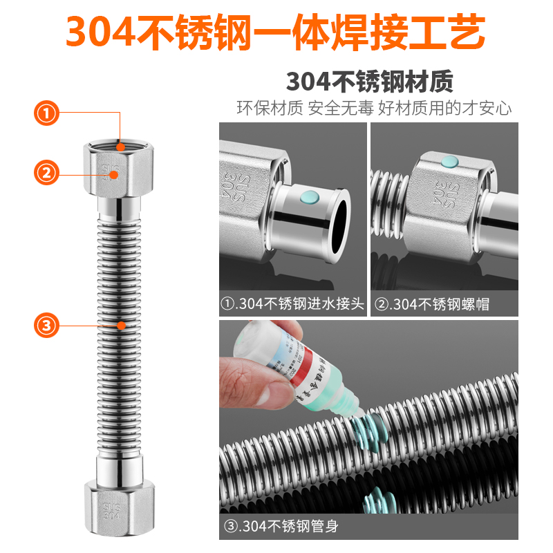 Household 304 stainless steel bellows water heater Hot and cold metal inlet pipe hose 4-point toilet connection pipe Water pipe