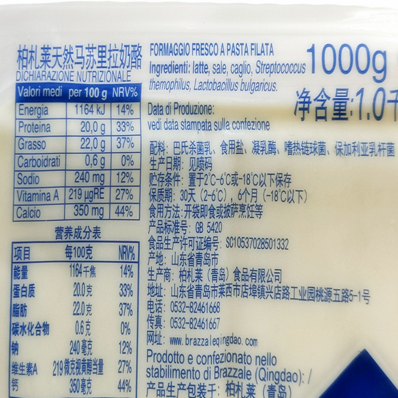 Platinum Zale Natural Masuria Cheese Cheese Cheese 1000g Original Pizza Oven Baked Rice Drawing Cheese Baking Raw Material