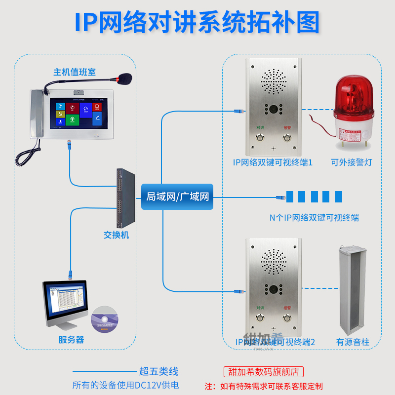 IP Internet Talkback Terminal System School Hospital Alarm Linkage One-Key Emergency Help Call Double Double two-way talkback Visible extension Car park Broadcast yelling LAN Cross-network segment