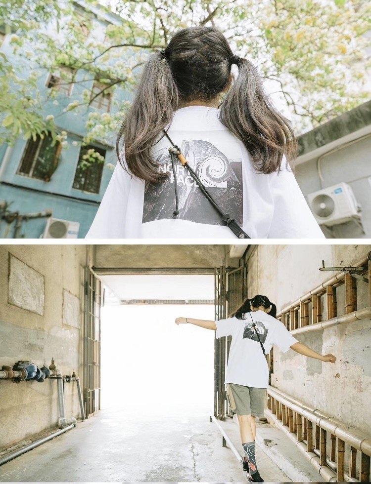 2020 North Japanese edition Heavy 320 gr Organic cotton short sleeve T-shirt male and female with the same thick solid pure cotton round collar inner lap