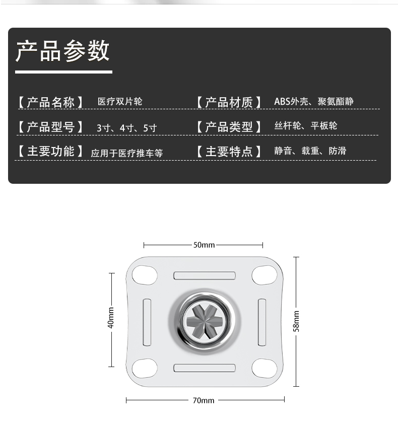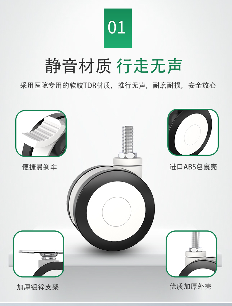 Medical bed caster 5 inch medical double wheel M12 wheel brake universal silent wheel bed special wheel