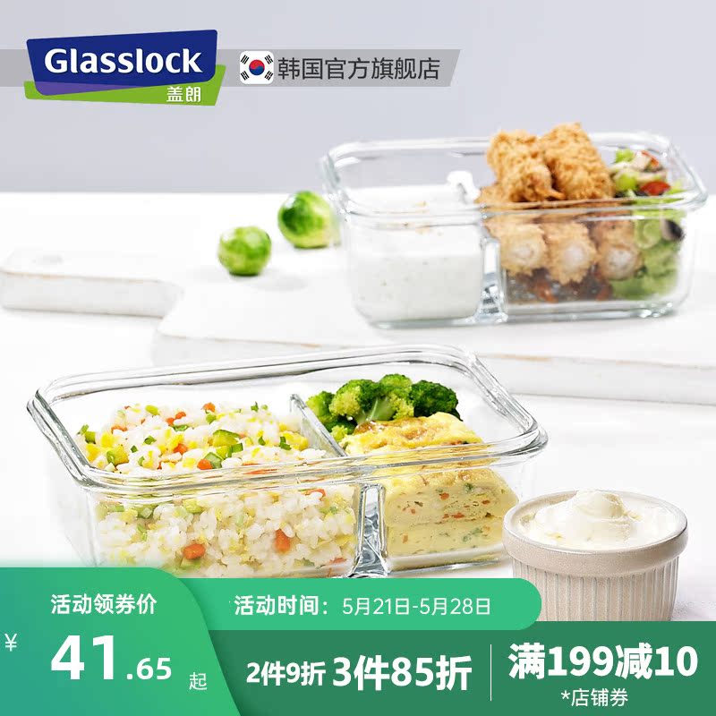 Glaslock Heat Resistant Tempered Glass Crisper Separated Microwave Oven Work Family Lunchbox Divided REFRESHING BOX