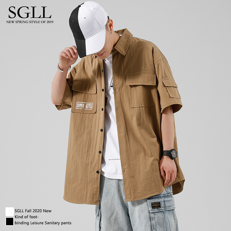 Frock shirt male short sleeve Summer thin Japanese style casual shirt card with 50% sleeve dk uniform denim half sleeve