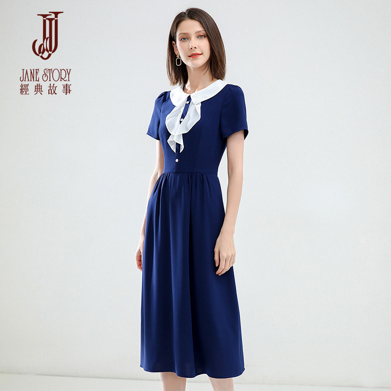 Classic Story 2022 New Collision Color Flip Collar Short Sleeve A-word Dress Sashimi Slim Mid-Length Prints