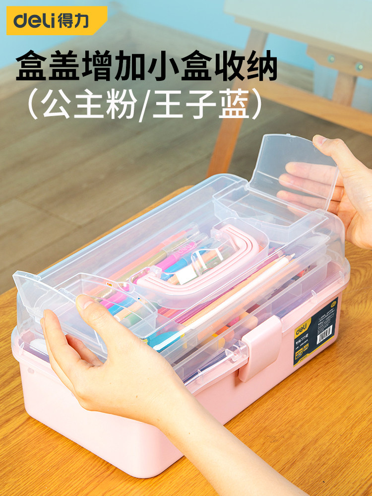 Princess pink large size 13 inch 325*185*145mm (large capacity three-layer pallet partition) Prince Blue large size 13 inch 325*185*145mm (large capacity