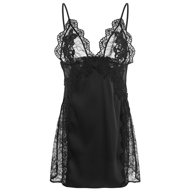 Sexy pajamas women's summer temptation ice silk suspenders nightdress thin section private hot lace short skirt home service autumn and winter