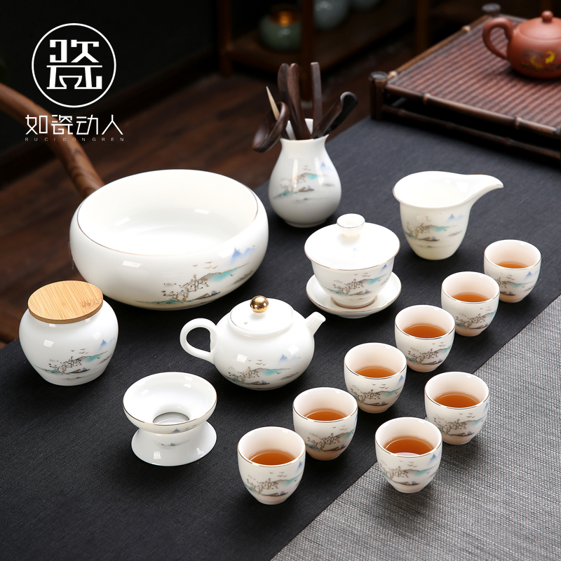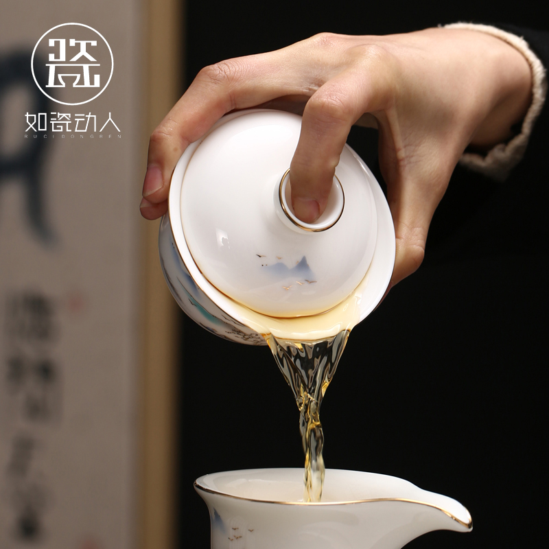 Such as porcelain enamel cover bowl single tri-tall cup ceramic teapot lamb white jade porcelain kung fu tea