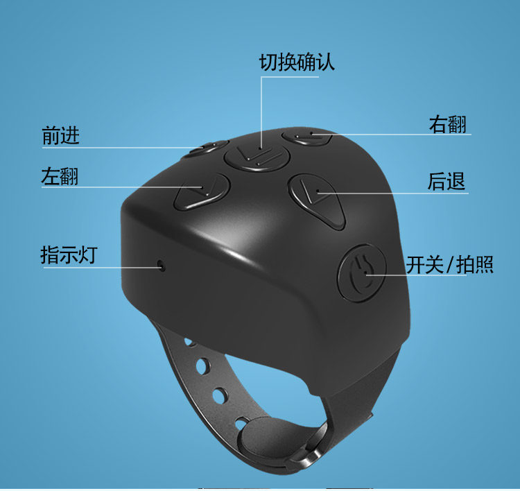 Waterproof rechargeable cell phone Bluetooth remote control ring fumbling fast hand photo recording screen fiction page turning remote control