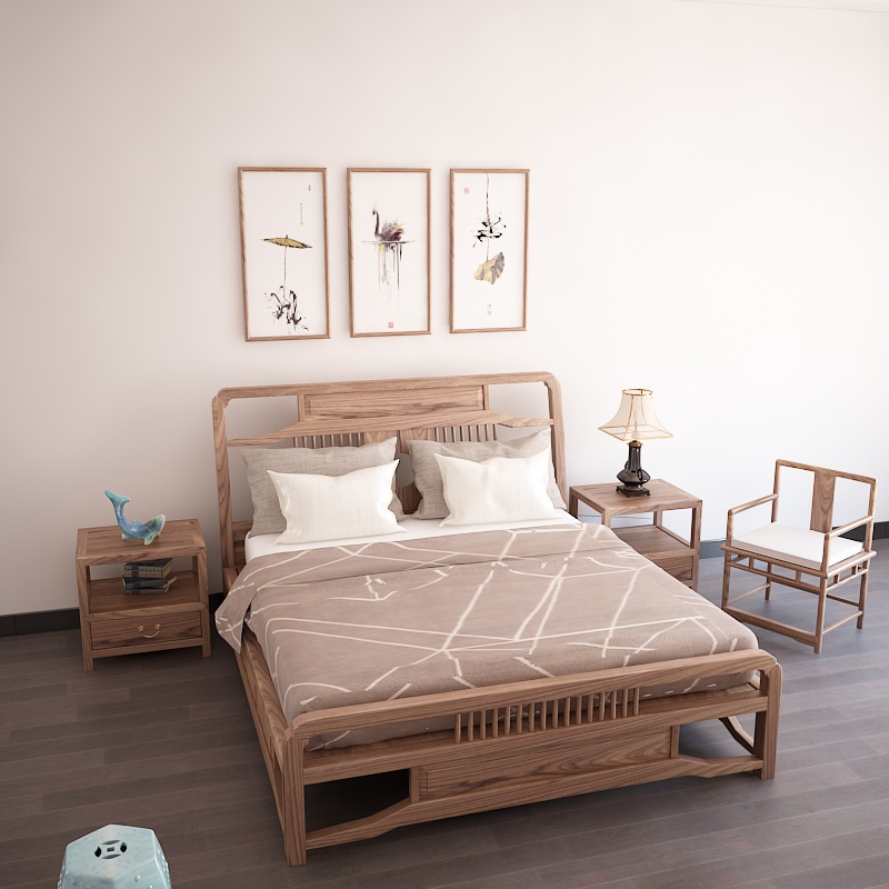 New Chinese solid wood large bed 1 8 large bed Zen log double man bed old elm wood wedding bed linen bed custom-made furniture-Taobao