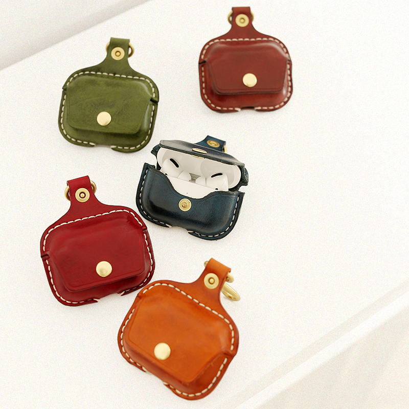Retro genuine leather pure hand-stitched cowhide headphone protective case apple airpodspro bag personalized leather case