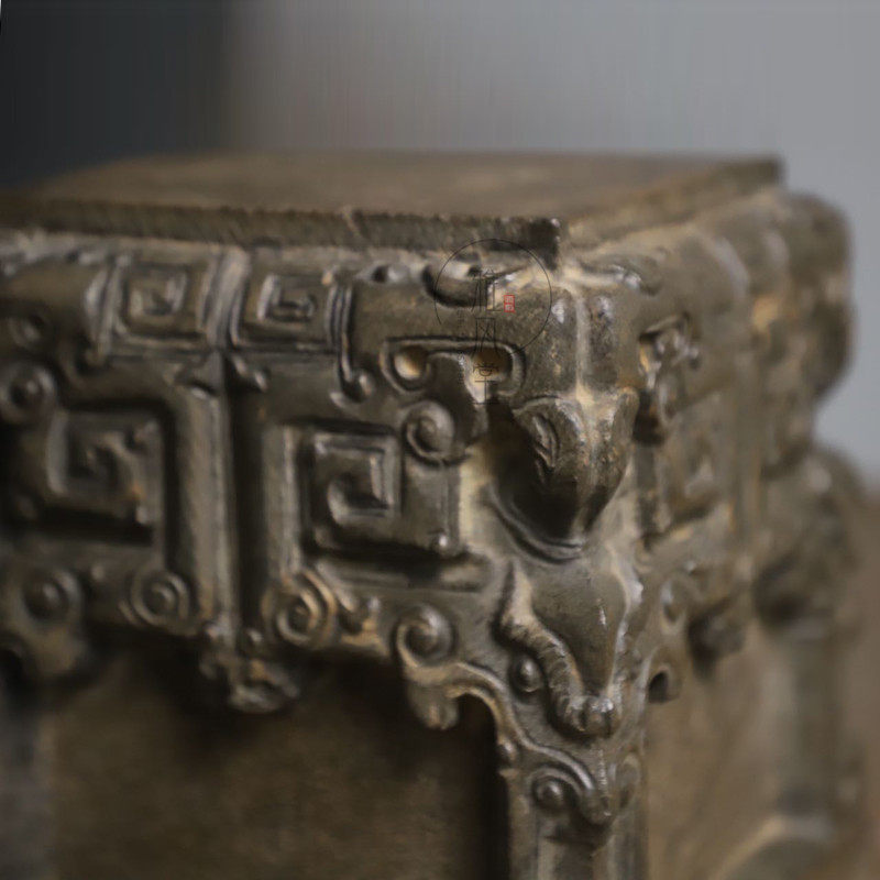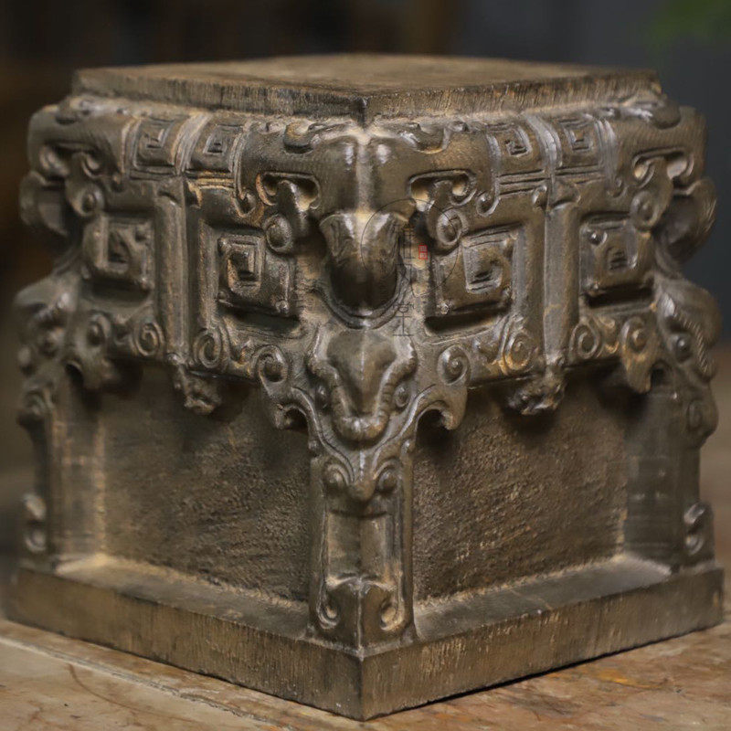 Bluestone stone carving Classical ancient method Pure hand carved square beast head stone pier Chinese club desk classical ornaments