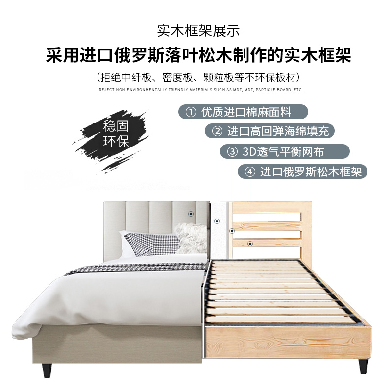 Fabric bed (color customizable) detachable washcloth bed head cabinet * 1 cloth art bed head cabinet * 2 cloth art bed coconut palm mattress cloth art bed latex mattress cloth art bed coconut palm mattress bed head cabinet *