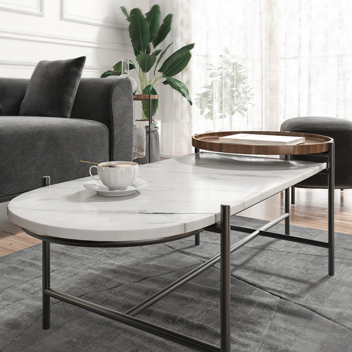 Oval tea table Nordic marble coffee table simple modern small apartment living room home designer creative split