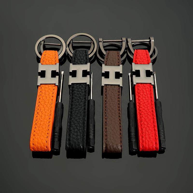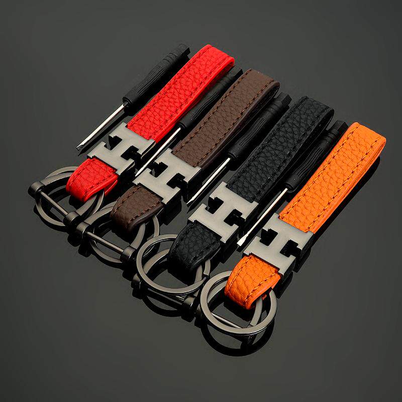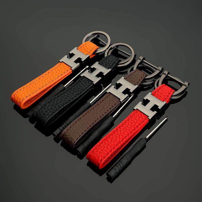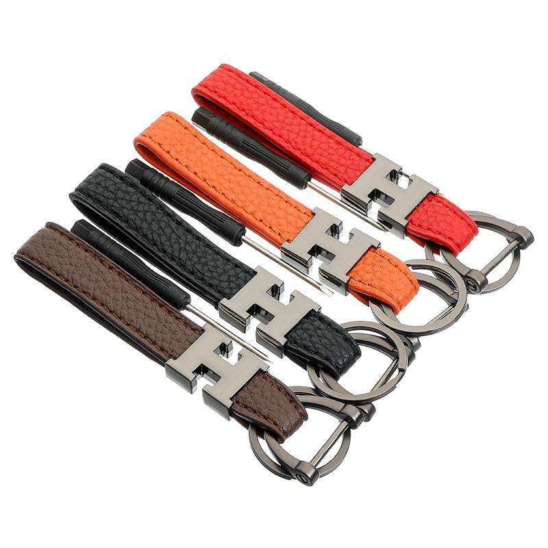 LVGEDETE horseshoe buckle H letters lychee textured car genuine leather with key button Foos key hanging decoration key chain