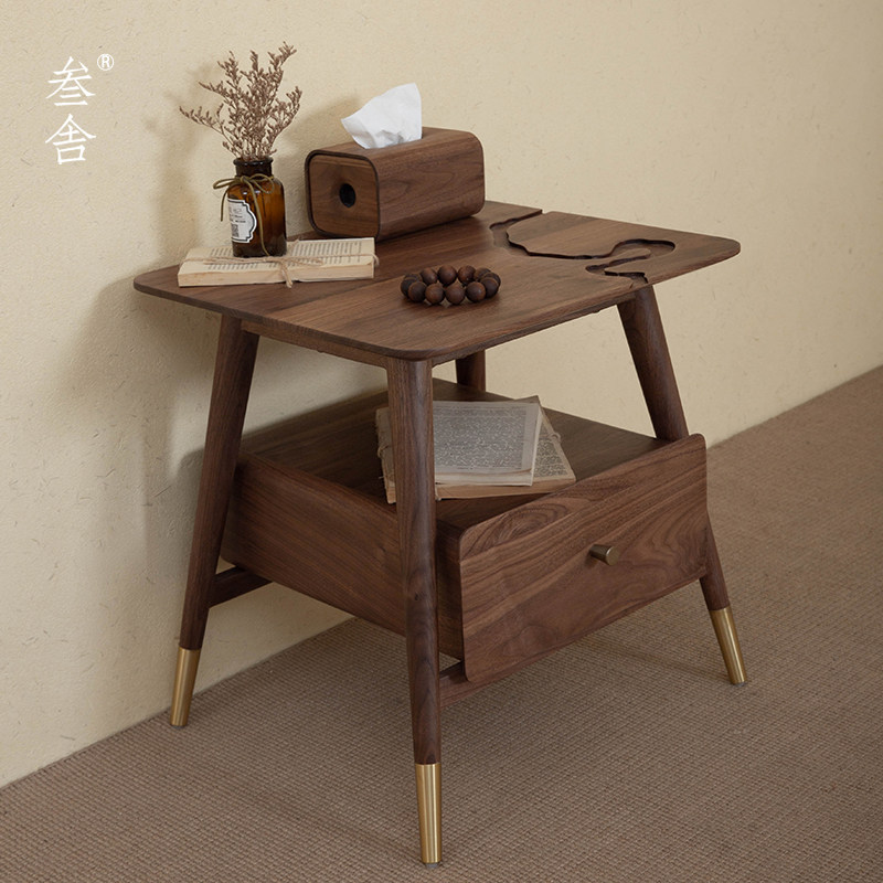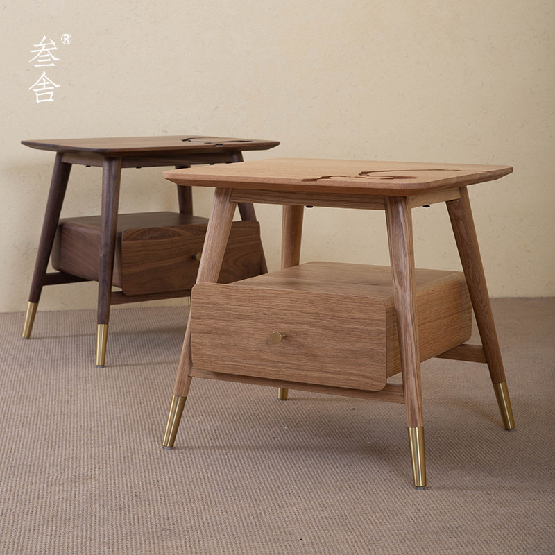 Sanshe original bedroom bedside table bedside small table simple modern black walnut solid wood sofa Nordic side table D4
