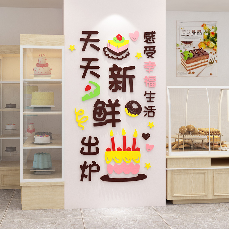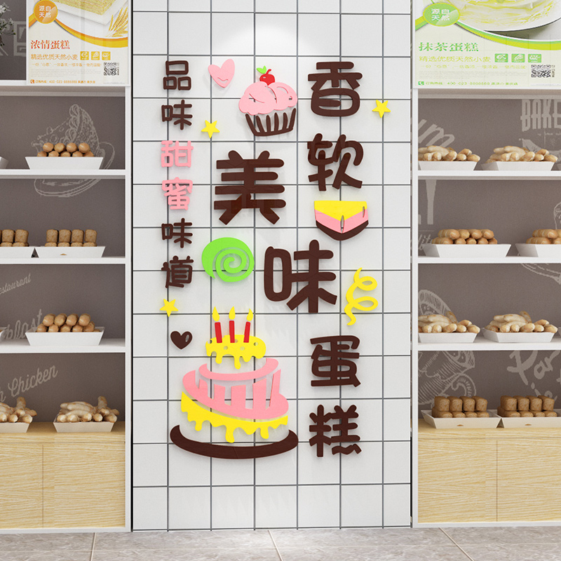 Egg Cake Shop Acrylic 3d Solid Wall Appliqued Baking Storefront Bag Sweets shop Creative background wall Wall Sticker Decoration