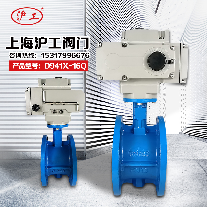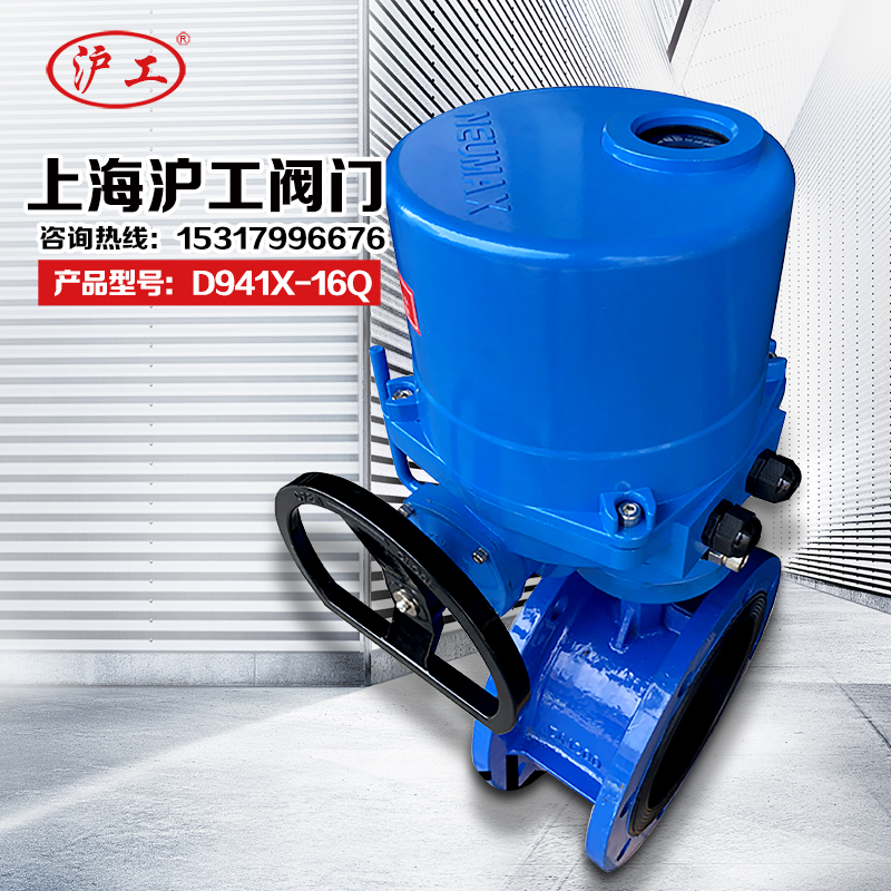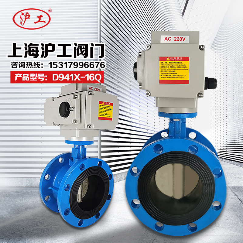 Shanghai Shanghai Shanghai valve Q941X-16Q electric butterfly valve ball cast iron soft seal flange valve DN100 200