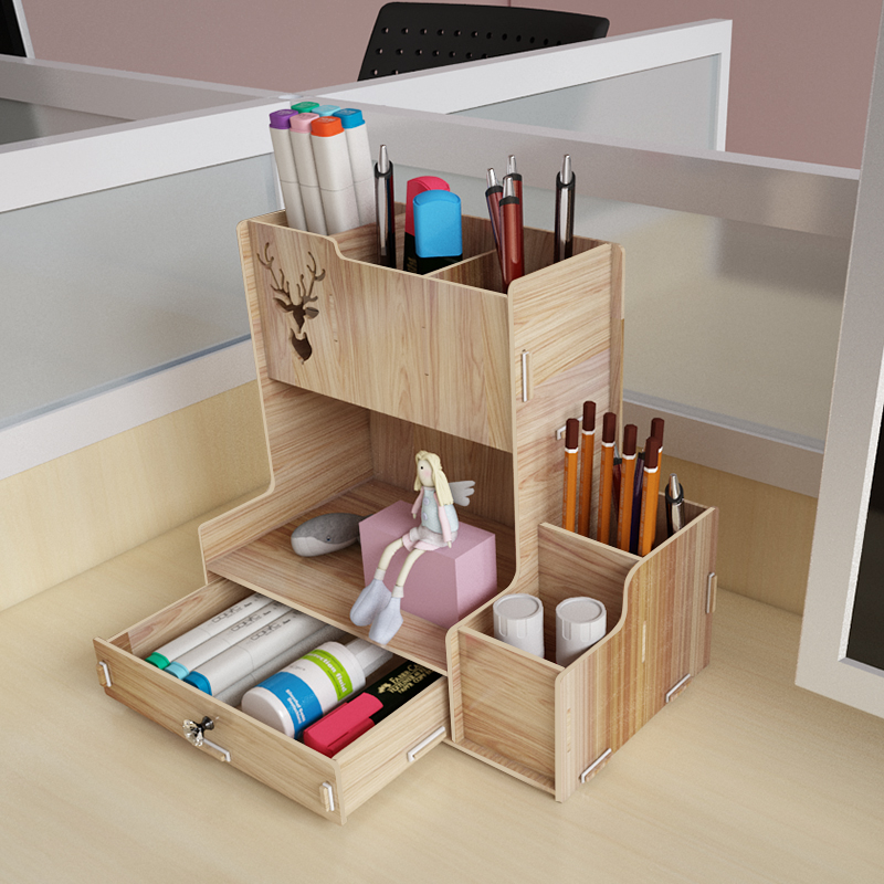 (Clear Cabin Pick-up) Office Supplies Grand full desk containing student learning Stationery pen holder containing box Nordic personality minimalist desk brief Large capacity Miscellaneous Obliquely Inserted Pen Holder