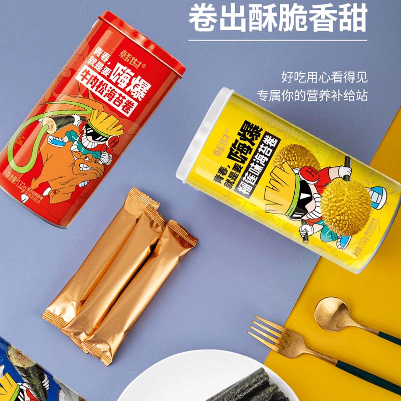 Han shihi fried pork floss seaweed roll children's leisure snacks barrel durian flavor egg roll seaweed sandwich crisp cans