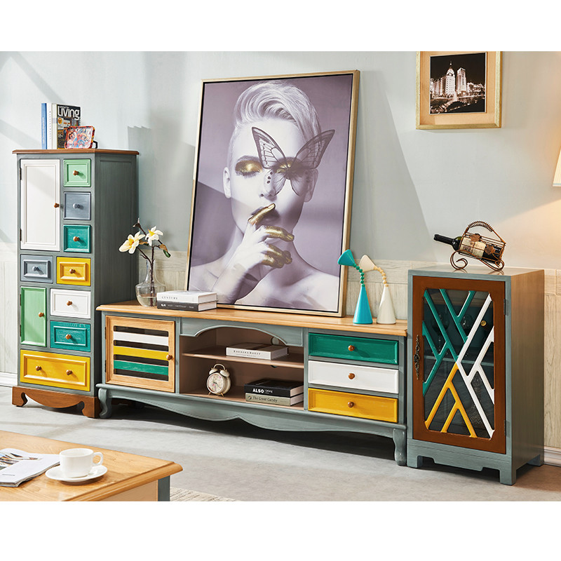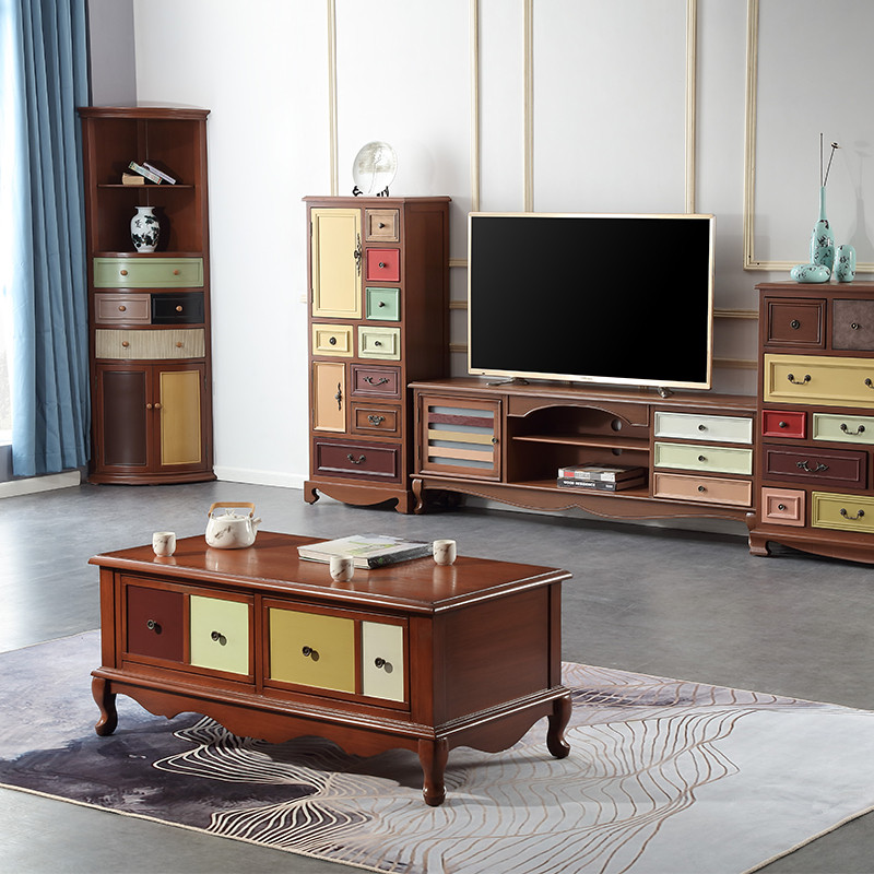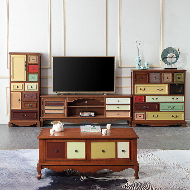 American style Tea Table Retro Living Room Colorful Ploy Tea Table Tea Table TV Cabinet Combination Countryside Furniture Full Suit