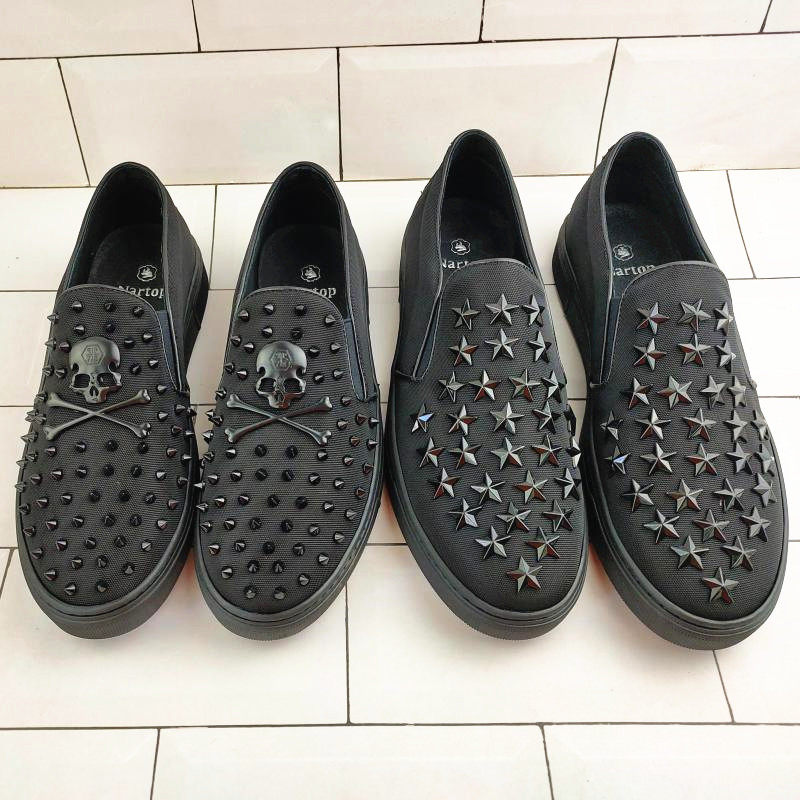 High-end shoes clear cabin Breathable Sliding Board Shoes Men Casual Shoes Personality Rivets A foot pedal Lazy Shoes 100 hitch Breathable Low shoes