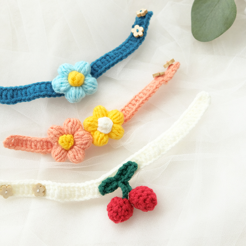 Kitty Neckline Adjustable Hand Knit Neck Collar Small Cat Pooch Enclosure Neck Collar Cute Cartoon Pet Cat Necklace