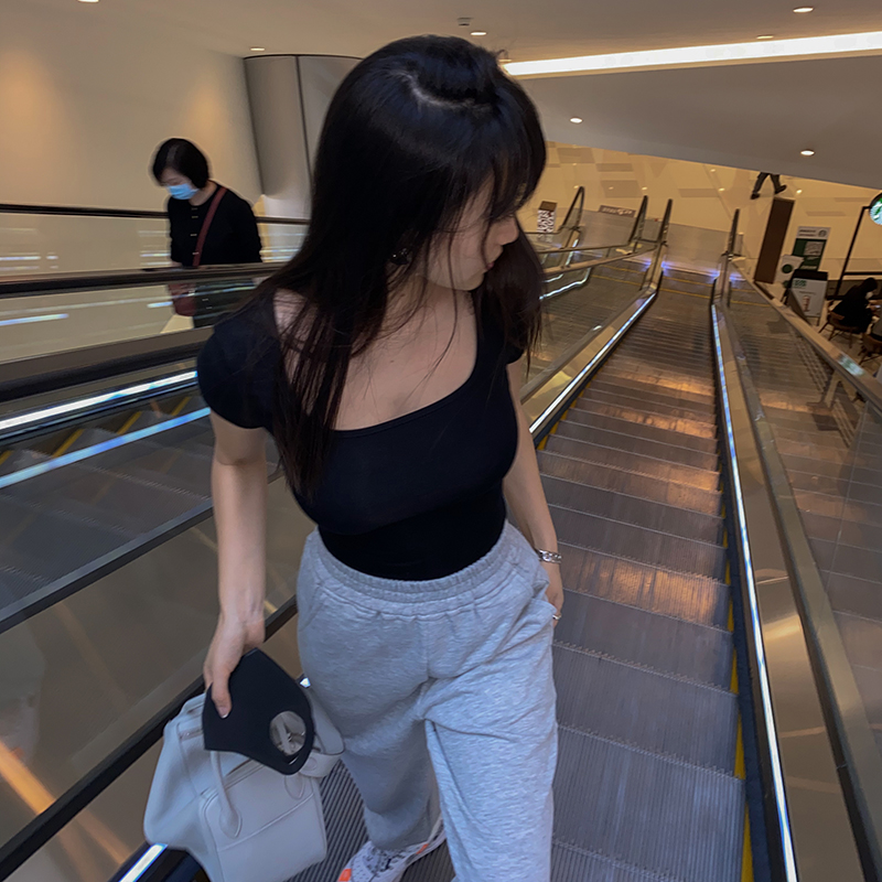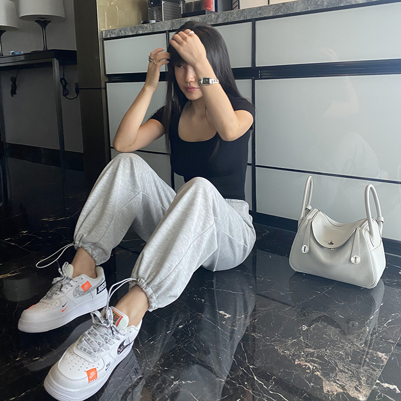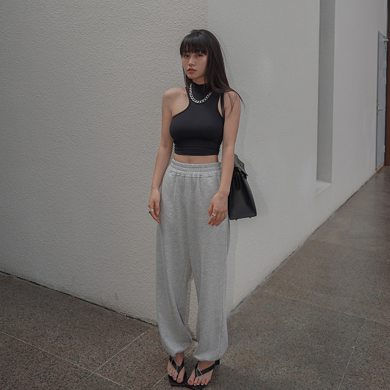 LEIYU feet sports pants women loose 2020 new gray European and American knitted pants summer high waist casual pants