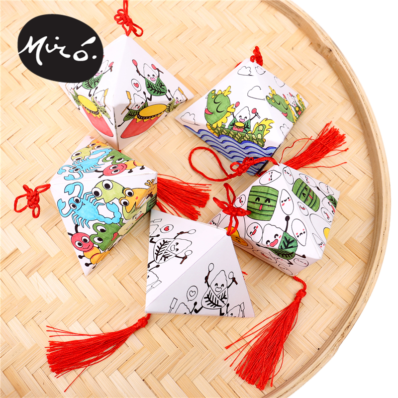 End Afternoon Festival Handmade Diy White blank rhomboid Glutinous Rice Dumplings Pendant children Painting and production of ring-wound Kindergarten Materials