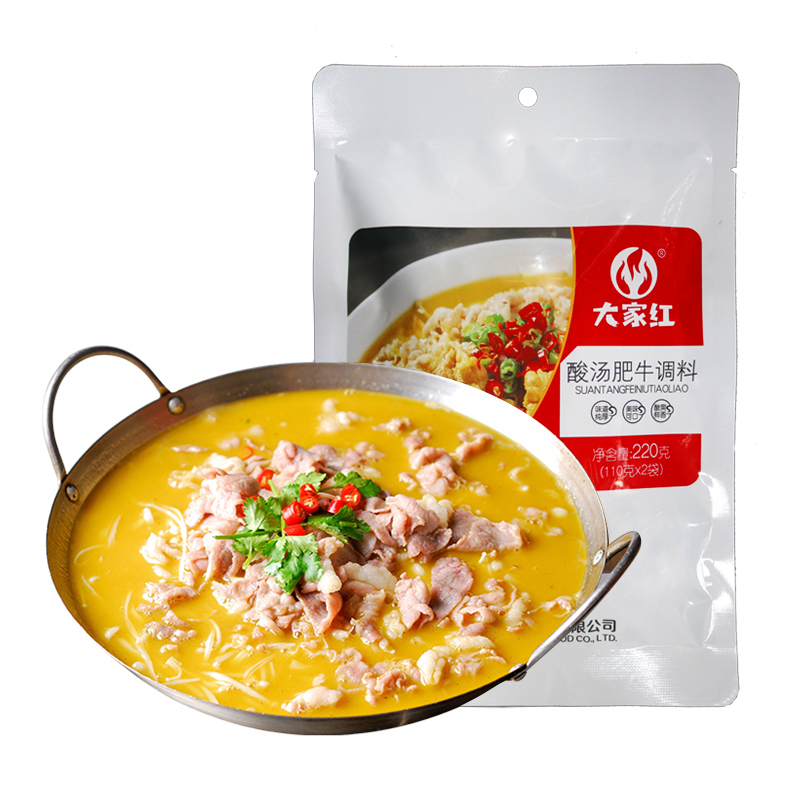 Everyone's red sour soup fattening beef seasoned with domestic seasoning gold sour soup sauce sour fish hotpot soup base 220g stock juice