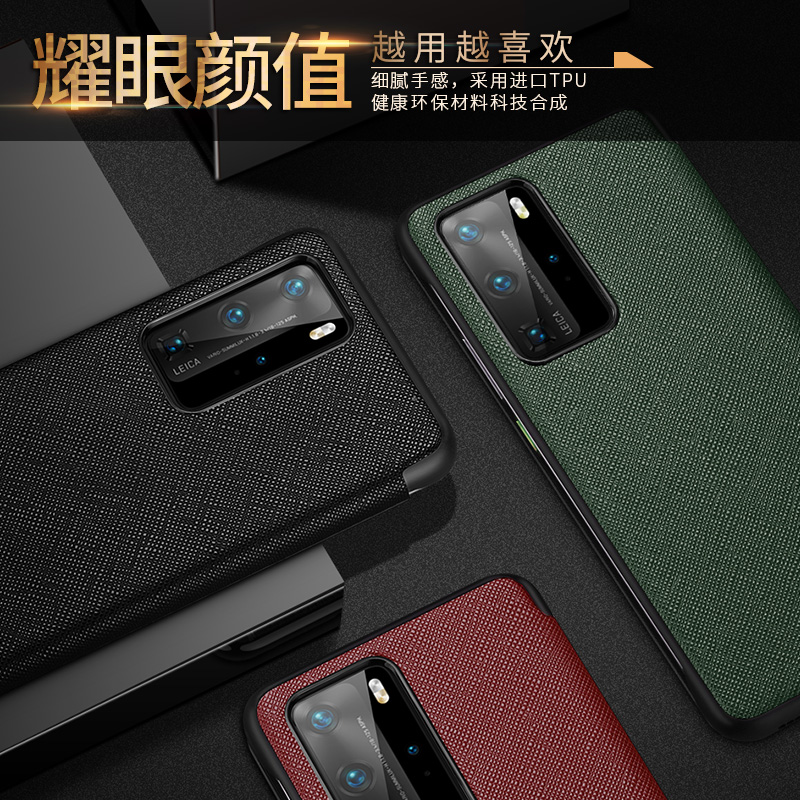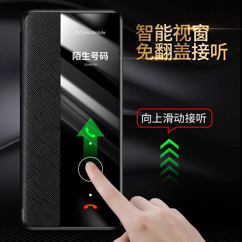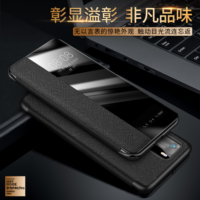 (headlayer cow leather fake one-to-lose ten) collection plus purchase for one year quality issue free exchange for new P40pro (elegant black) genuine leather upscale intelligent leather cover-send full screen soft film lens film