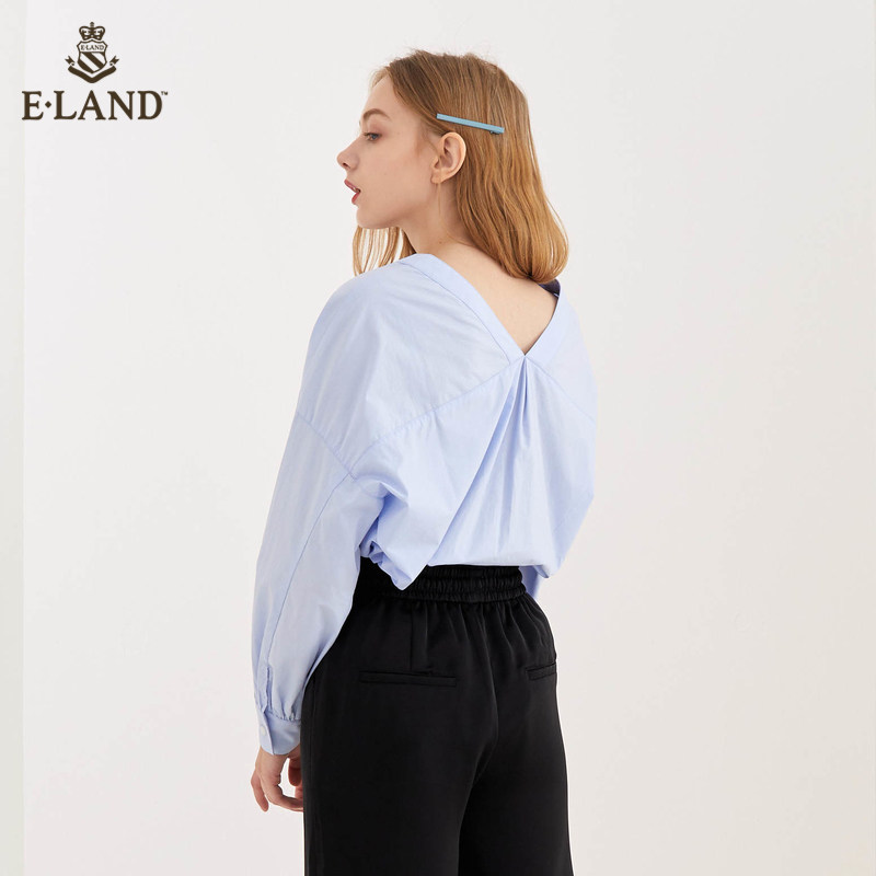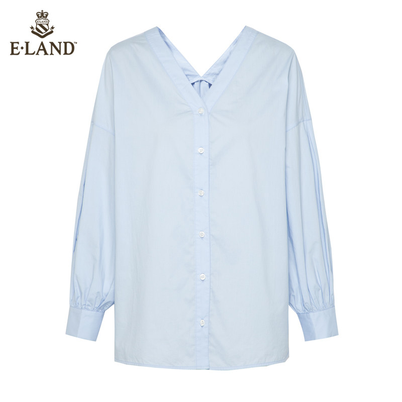 ELAND clothing love spring and summer sweet temperament V-neck high-class sense niche loose thin long sleeve cotton shirt women