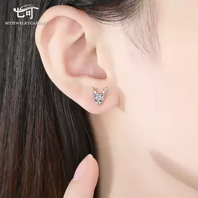 Seven can sterling silver stud female temperament simple 2020 New Tide one way you deer earring inlaid with Swarovski Zirconium