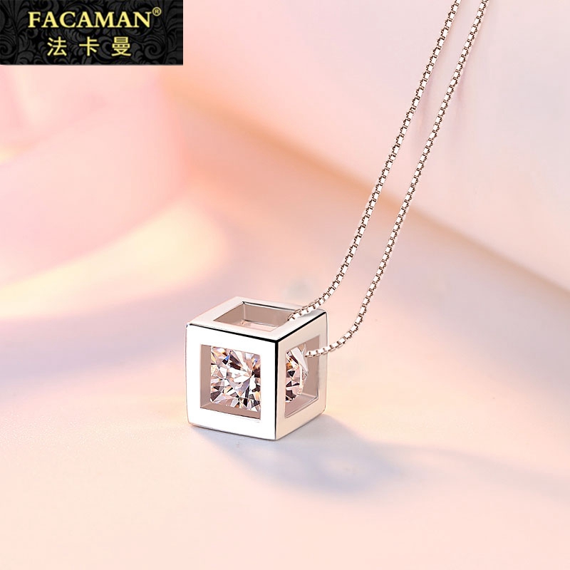Pure Silver Magic Square Necklace Female Tidal Net Red Temperament Brief Lock Bone Pendant Small Crowddesign 520 Gifts To Send Girlfriend