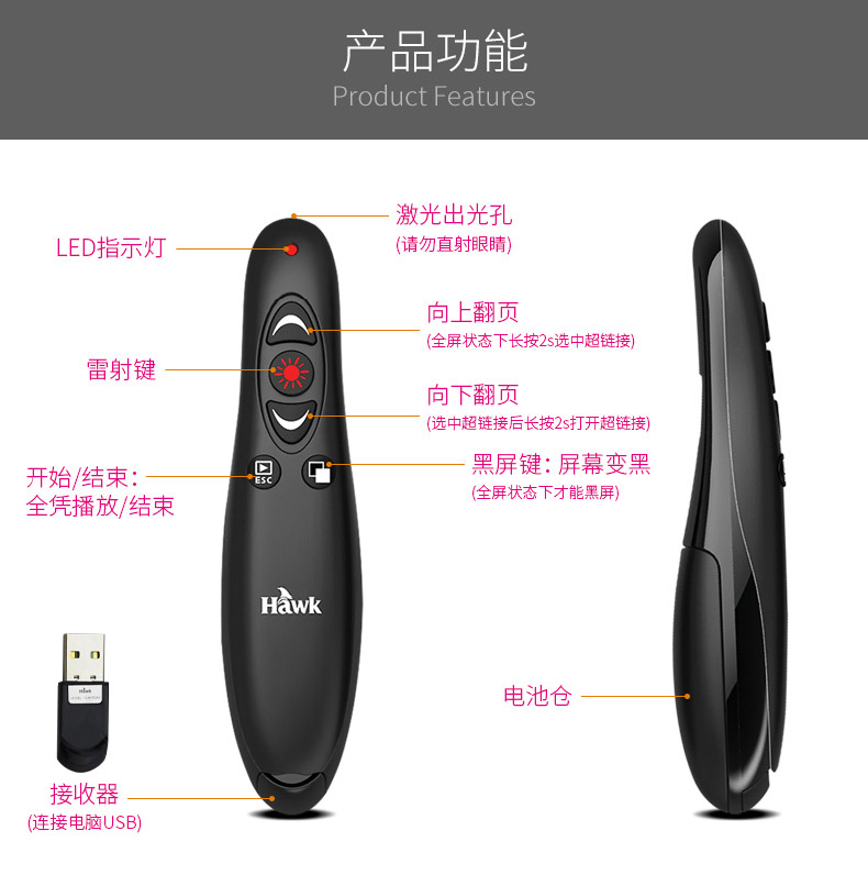 Haoke R260 intelligent multimedia page turn pen remote control pen demonstration laser projector electronic teaching stick ppt pen