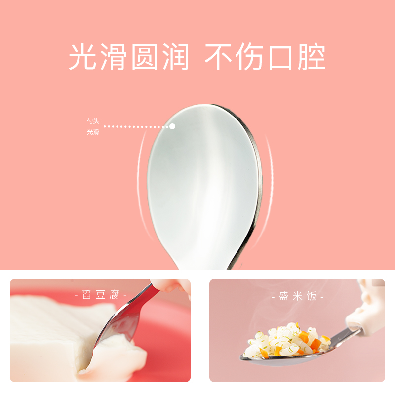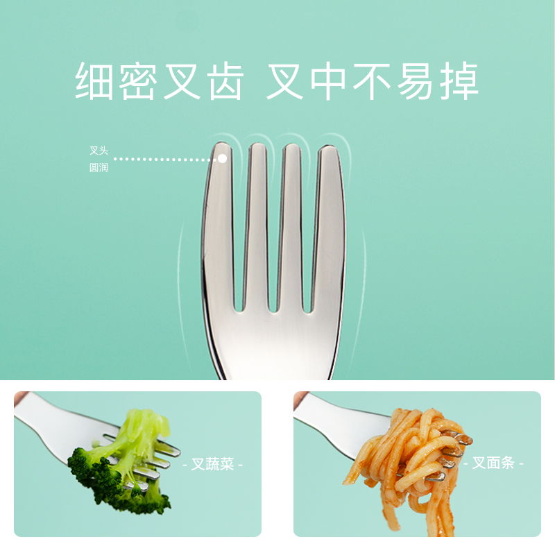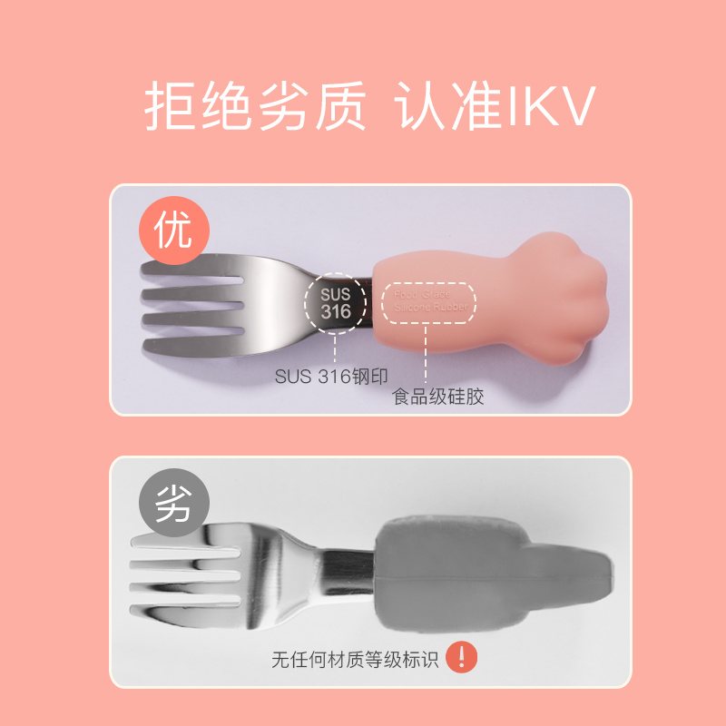 Aikawei IKV316 stainless steel short handle spoon Little baby learn to eat fork spoon baby food supplement training tableware