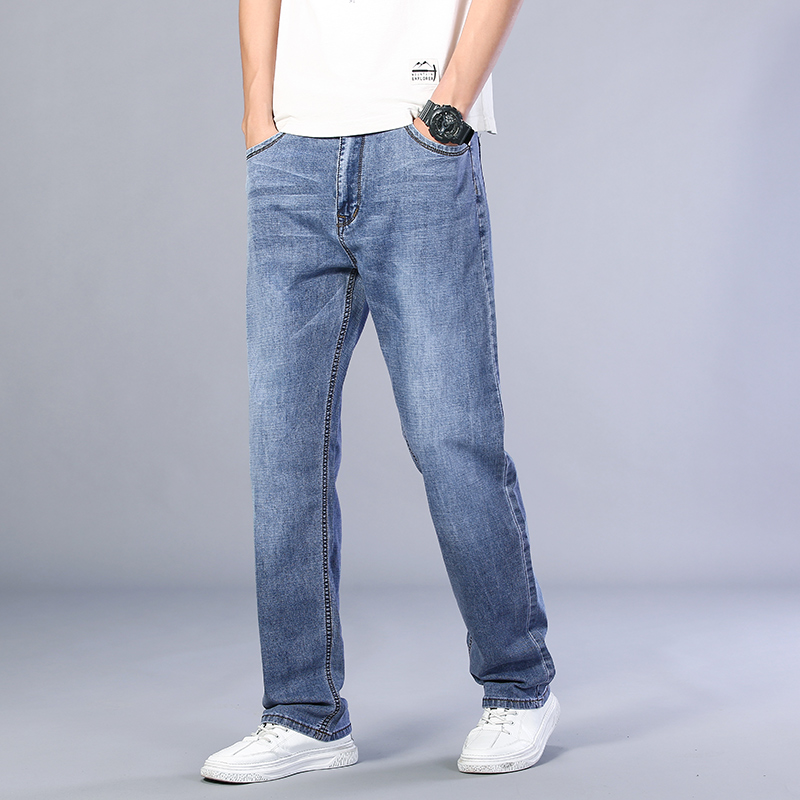 Spring Light Color Broadlegged Jeans Male Straight Cylinder Loose Casual Long Pants Big Foot High-end Summer Men Pants Spring And Autumn
