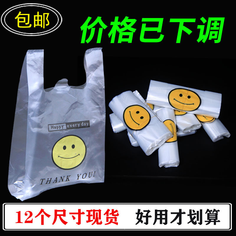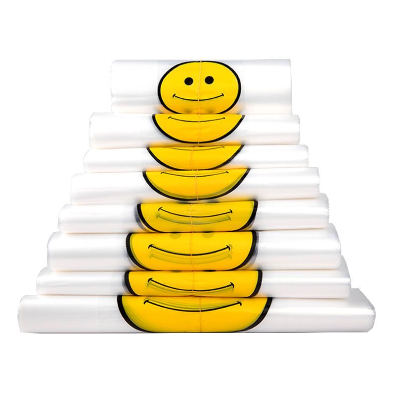 Plastic bag smiley face portable shopping bag vest convenience bag large transparent food delivery packaging bag customization