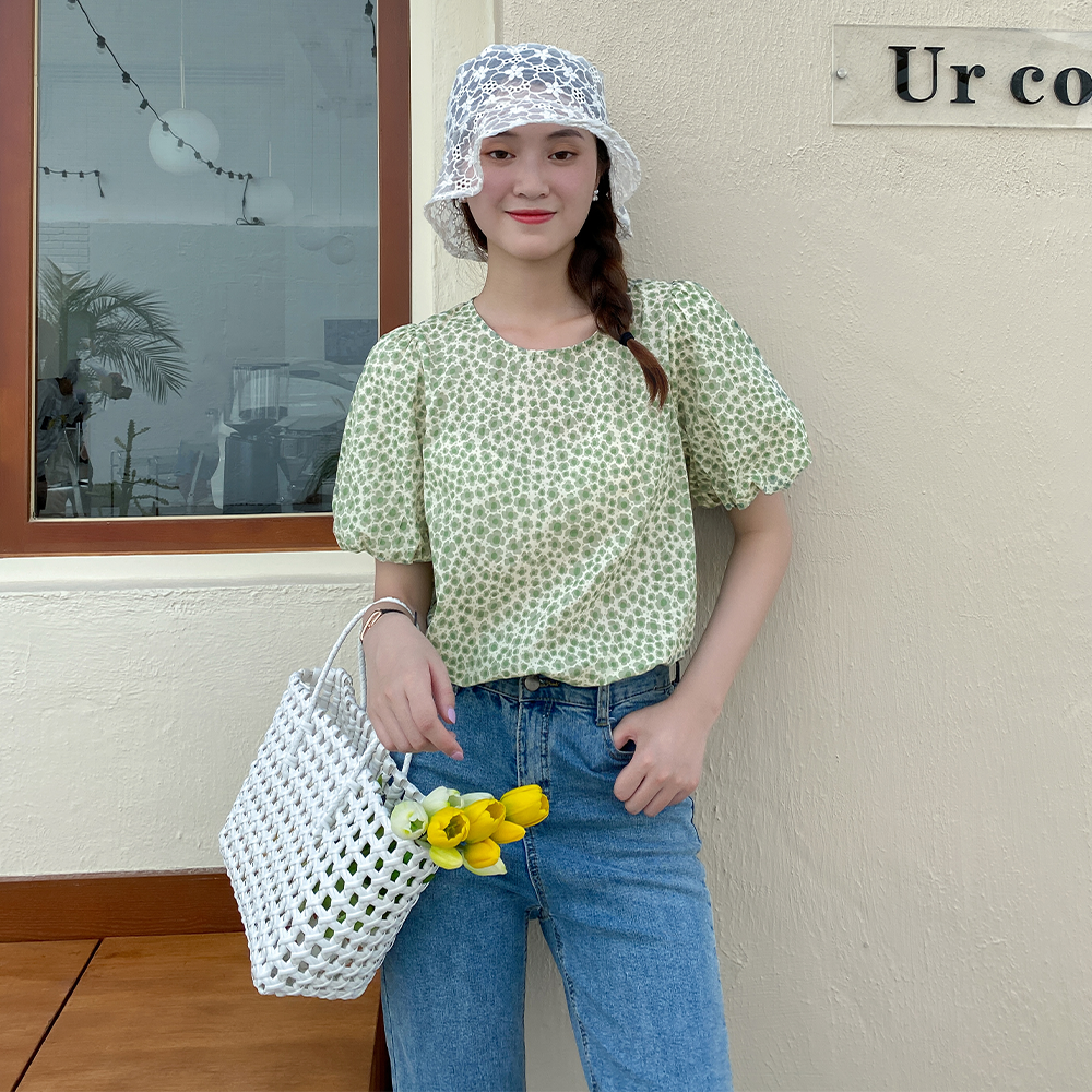 Love Rosaceae Big size Han version Bubble Sleeve T Shirt Woman New 2022 Summer Gentle Bm Flowers Blouse Women Sweet