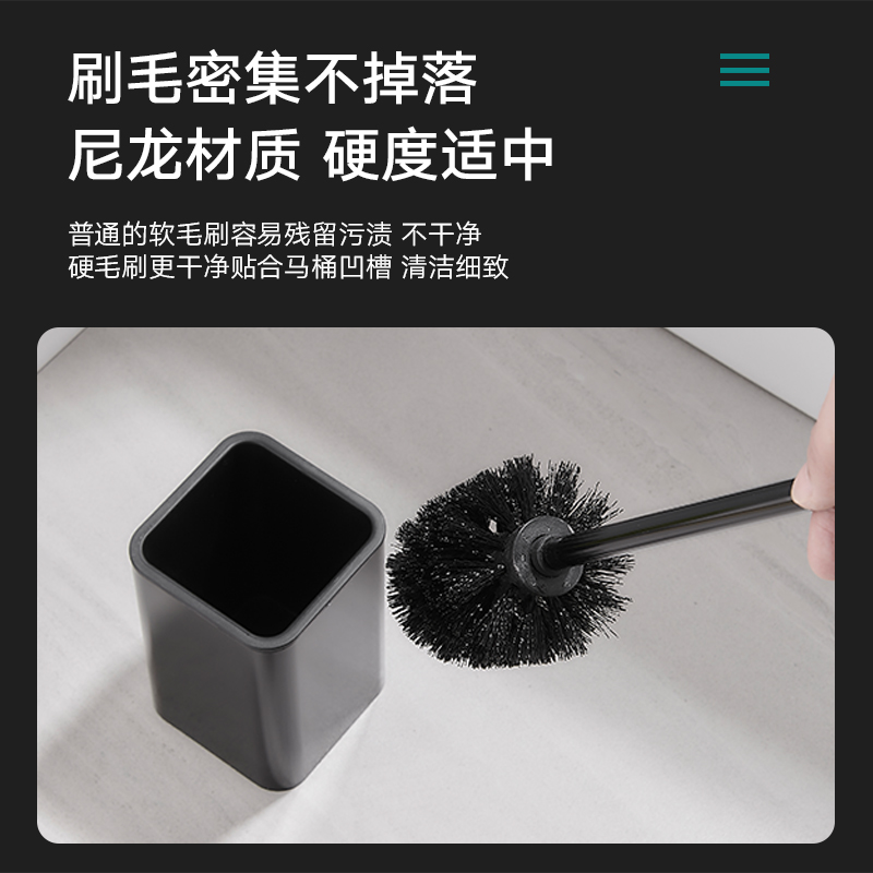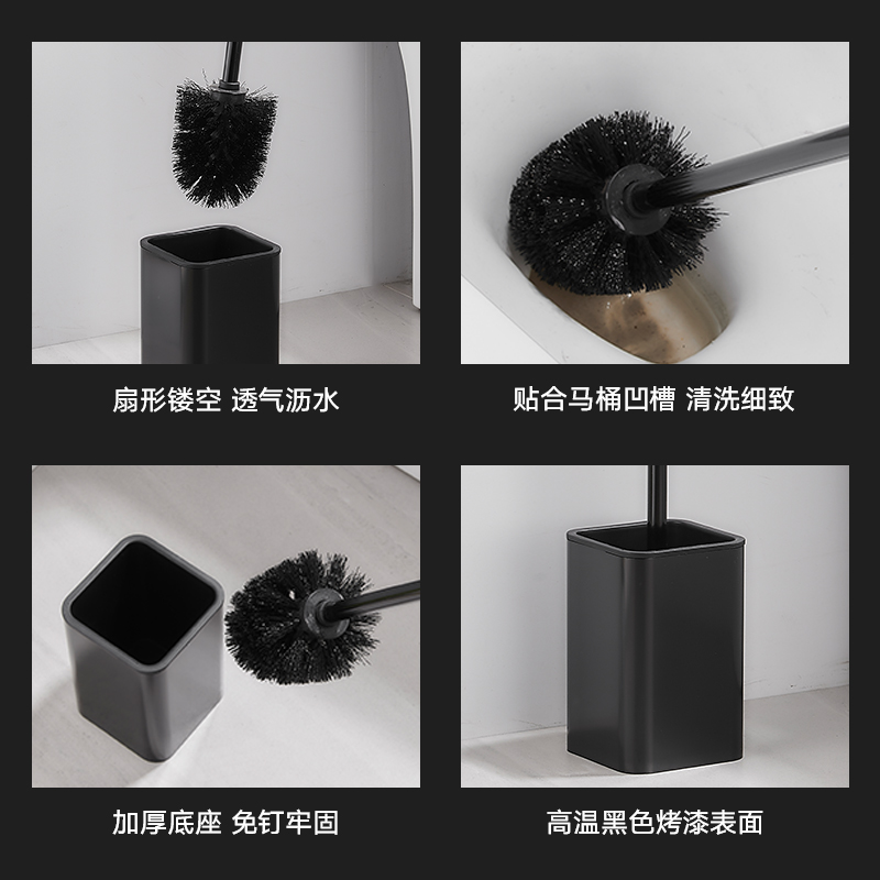 Black thickened square bottom toilet brush (ceramic cup) (no drilling)