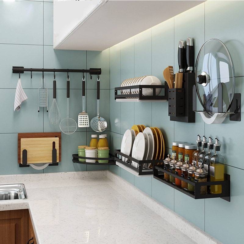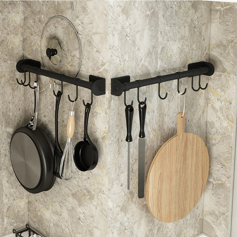 Kitchen stainless steel hanging rod shelf Wall-mounted punch-free hook row hook Spatula shovel pylons Knife rack storage shelf