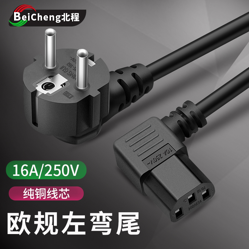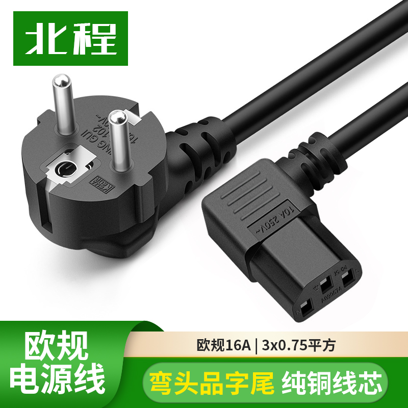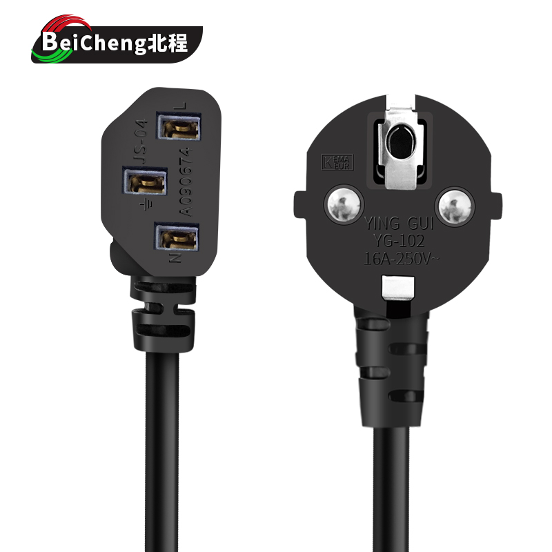 European Standard Computer Power Cord Bends Left and Right 3 Core 0 75 Square European Gauge Host Three Holes 2 Insert Ends 90 degrees