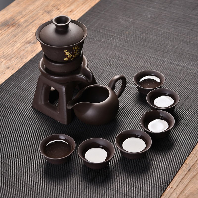 7 black purple sand Xishi pots 8 sets of black purple sand 7 heads celadon carp tea set black purple sand stone grinding automatic tea set tiger roaring purple sand stone grinding automatic tea set black purple sand stone grinding stone scoop automatic tea set purple sand moiré automatic tea set
