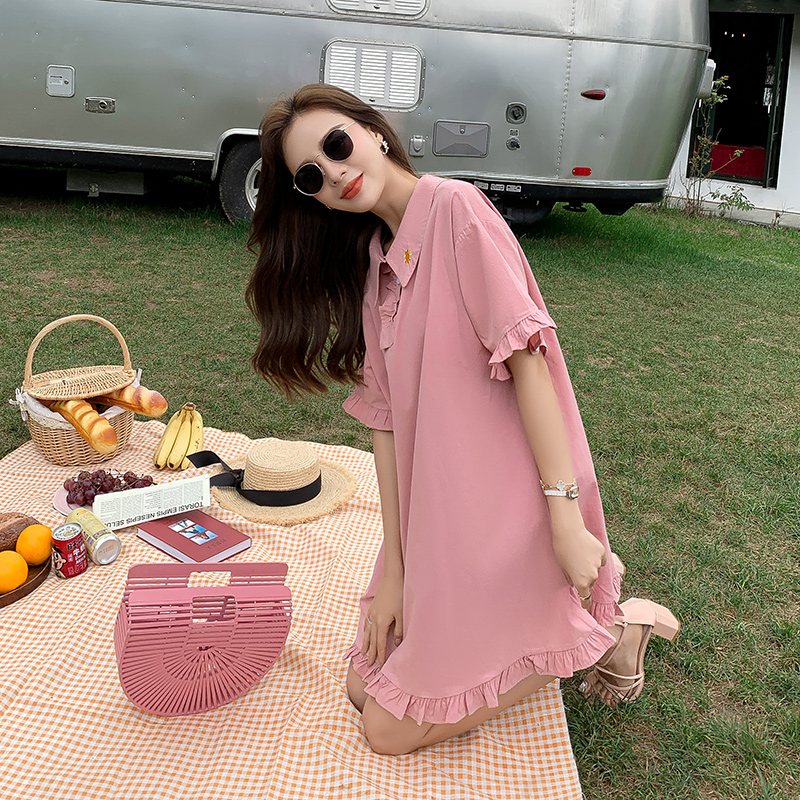 Purple loose straight T-shirt skirt long casual large size student dress female summer 2022 new small