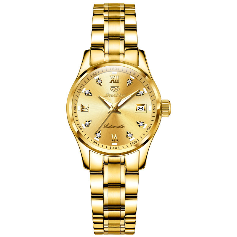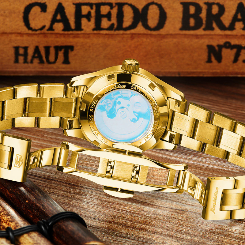 Steel belt all-gold women's watch between steel belts Gold and white surface women's watch between steel belts Gold black surface women's watch between steel belts Gold blue surface women's watch between steel bands Gold and white face male between steel belts